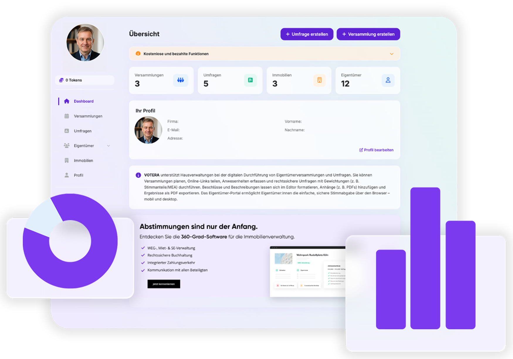 SCALARA übernimmt Ihren Verwaltungsalltag – Buchhaltung, Zahlungsverkehr, Stammdatenverwaltung, alles in einer Plattform. VOTERA macht Ihre Eigentümerversammlungen vollständig digital. Zusammen schließen sie die Lücke in der modernen Hausverwaltung.